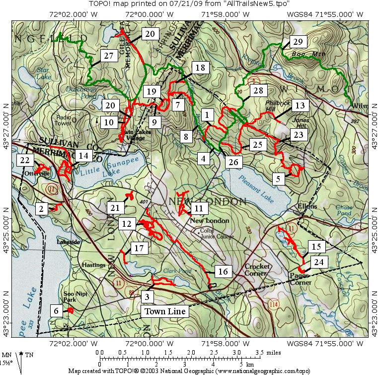 A larger (18" x 24") trail map for New London and vicinity is on sale at several locations in town including the Town Offices, the Tracy Memorial Library, Morgan Hill Bookstore, Village Sports, and Town of New London Information Booth.